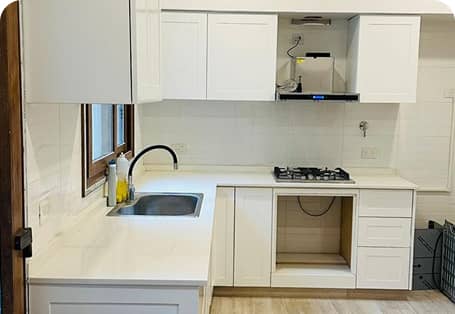 Installation of modern or classic kitchen furniture, adapted to the space.